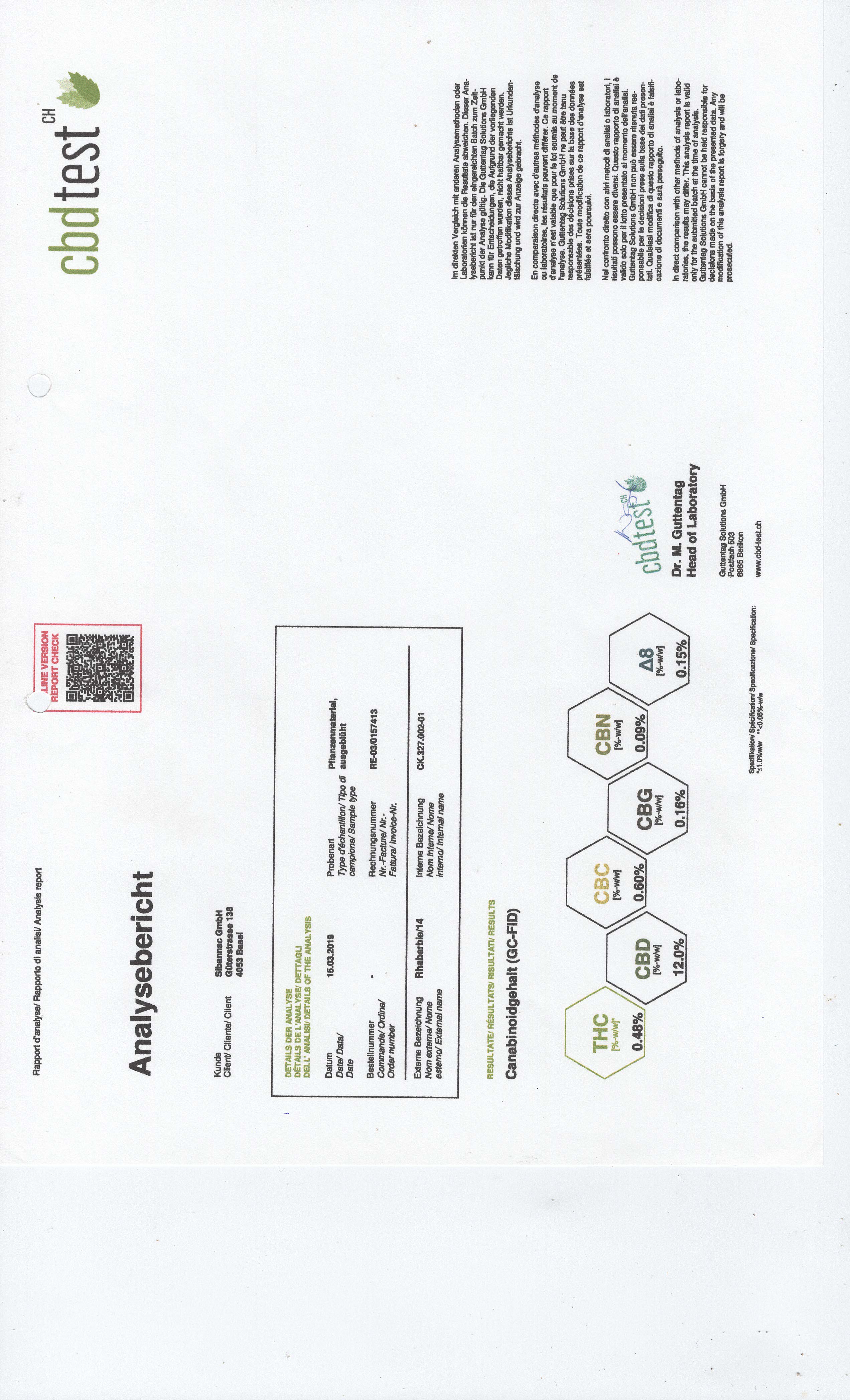 Ihr Duft erinnert tatsächlich an Rhabarber. Ein leicht süsslicher, nicht aufdringlicher Duft, der im Rauch sehr betörend ist. Auch der Geschmack im Mund ist sehr angenehm. Die Barbie unter unseren Sorten ist wirklich gelungen und das Suchtpotenzial ist sehr hoch. Also aufgepasst, schaut ihr nicht zu tief in die harzigen Augen!